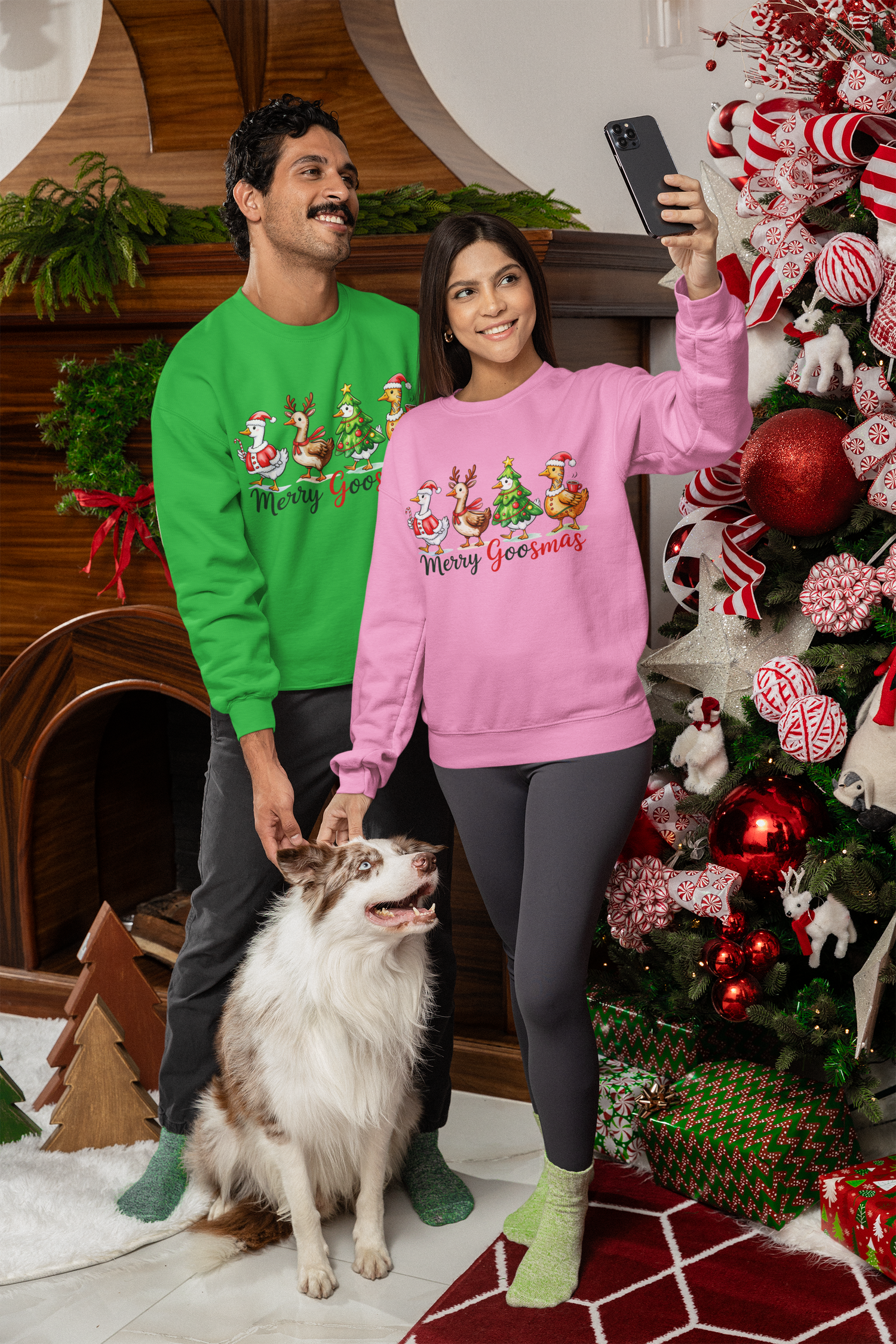 Christmas Goose Sweatshirt, Christmas Dinosaur, Merry Goosmas