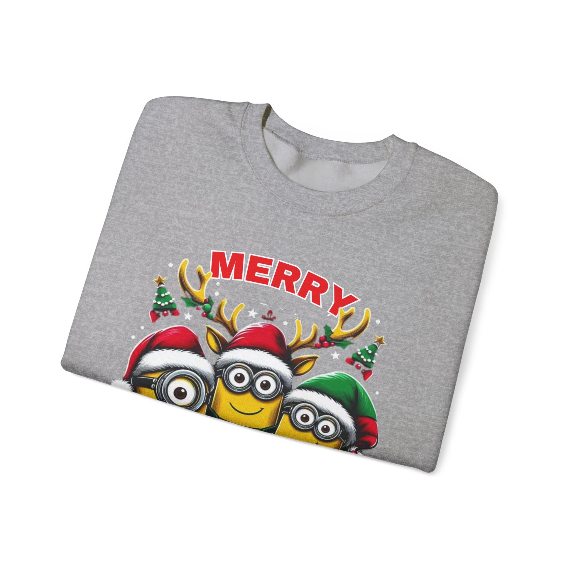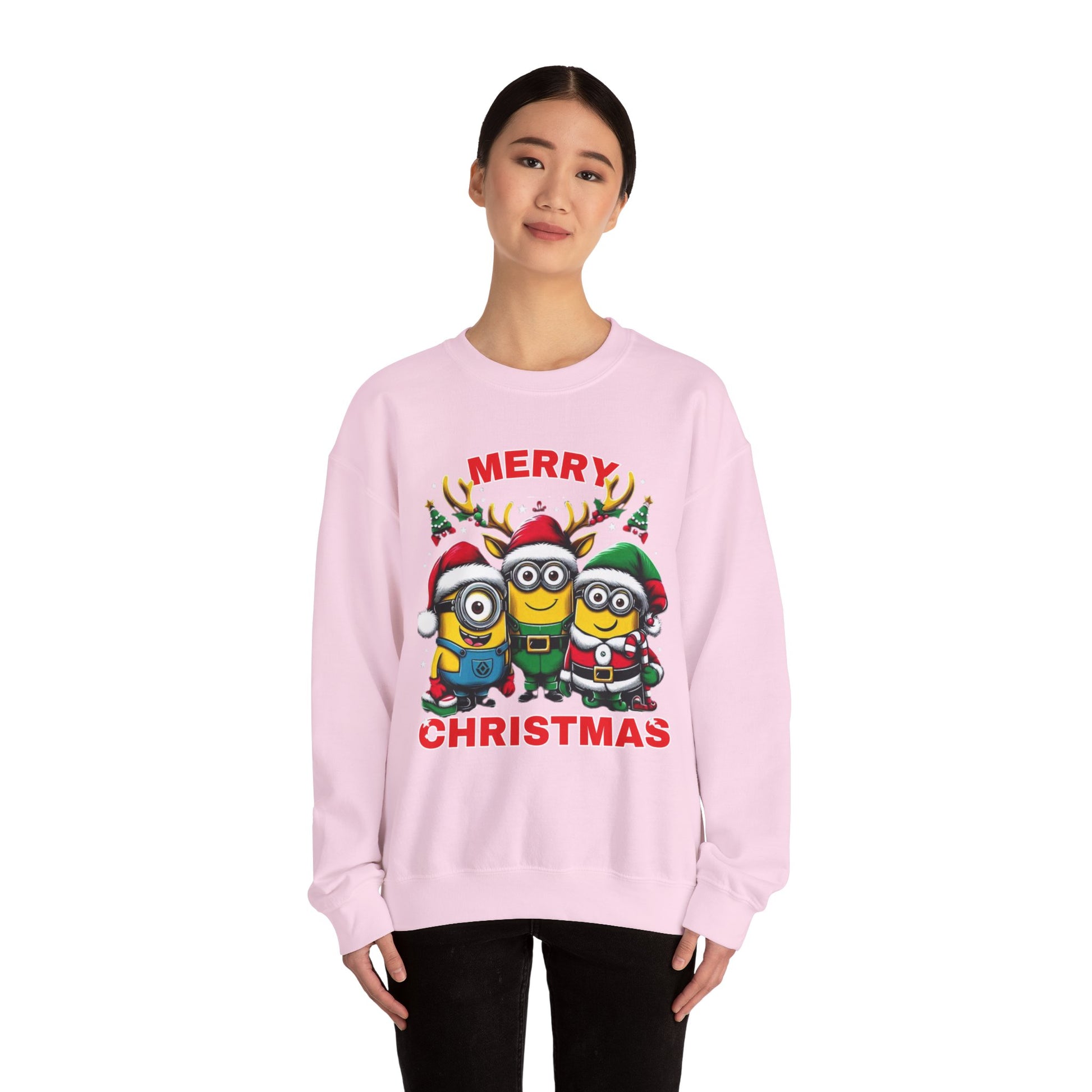 Stay cozy and festive this holiday season with this Christmas Minion Holiday Sweatshirt. Perfect for family matching or just spreading some cute Xmas cheer, this unisex heavy blend crewneck sweatshirt is made for comfort and durability. Ideal for adults looking for a fun and festive sweatshirt for Christmas celebrations.