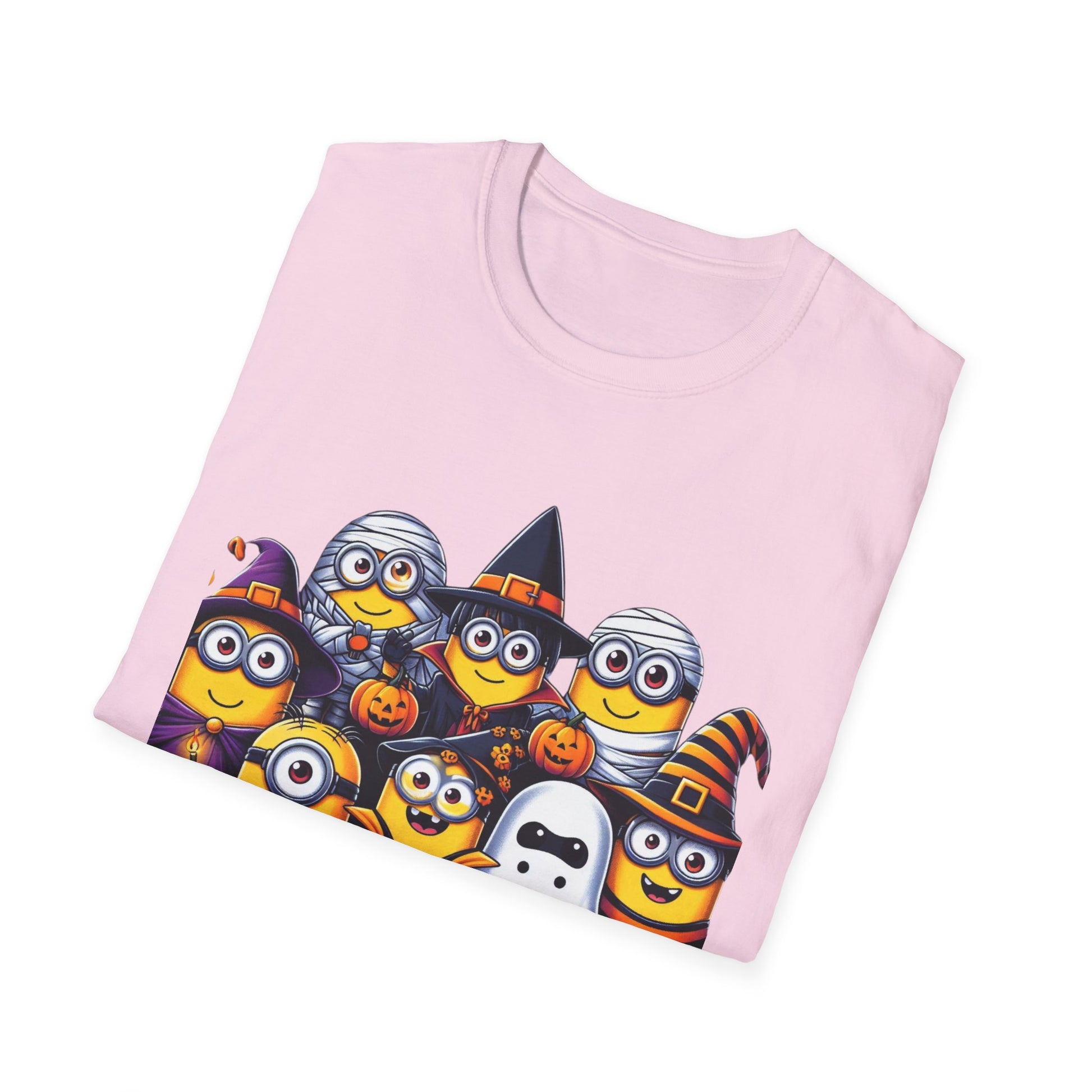This cute Halloween Minion T-Shirt is perfect for those looking to add a touch of humor to their spooky season wardrobe. The funny design offers a playful vibe, making it ideal for Halloween parties, trick or treating, or simply celebrating the season. Targeted towards adults, this unisex softstyle T-shirt is made from durable and smooth fabric, perfect for printing and ensuring comfort all year round.